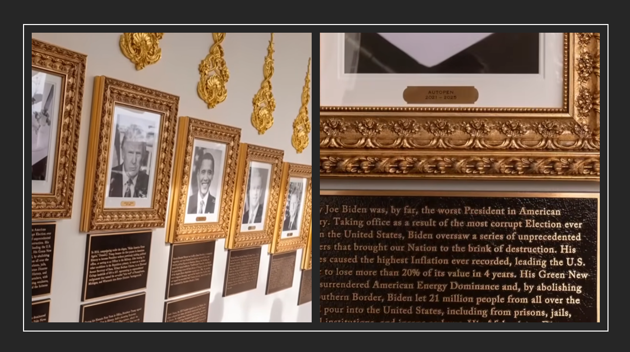 Of all the elements in the Trump Presidential Walk of Fame, nothing sent the media spiraling harder than the autopen standing in for Biden’s portrait. That single image says more than a thousand White House press briefings ever could. It crystallizes what Americans watched in real time: a presidency run by staff, propped up by media protection, and insulated from reality until the debate stage finally blew the cover.